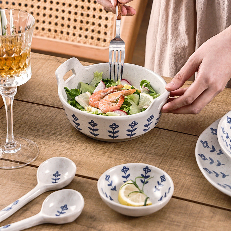 Vintage Small Blue Flower Ceramic Plates Cutlery Set